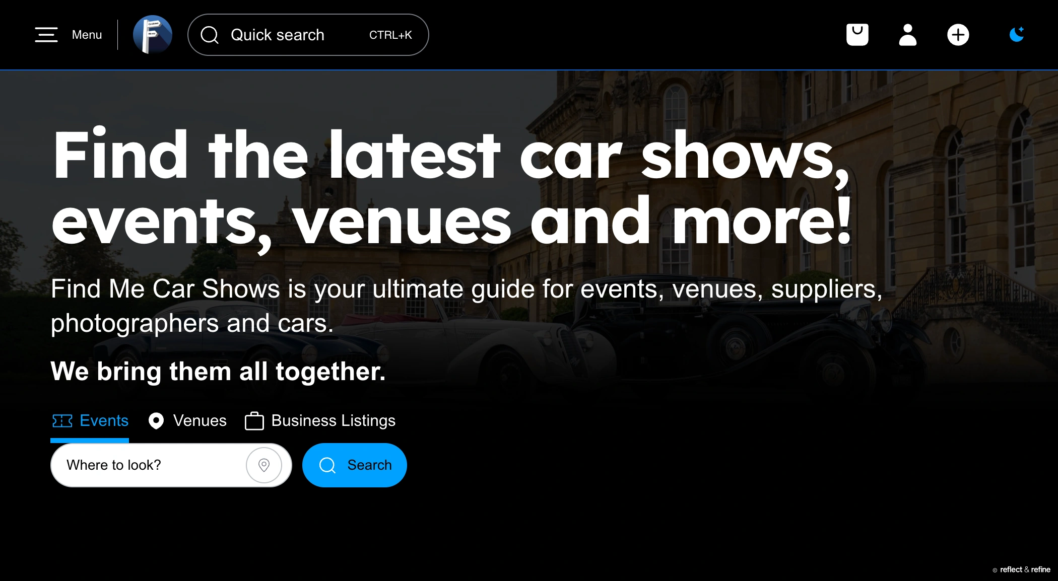UK-wide directory for car shows and events, built for speed and mobile-first use.